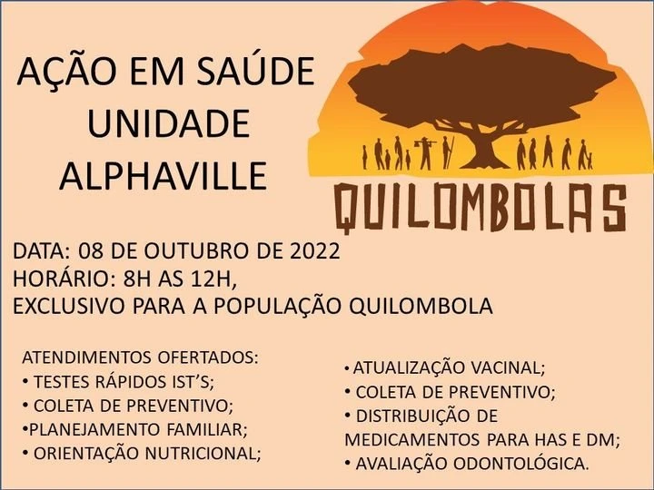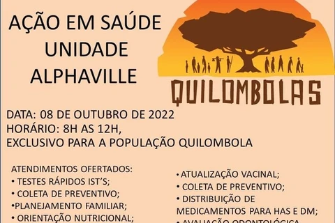 COM ASSESSORIAS - A Secretaria Municipal de Saúde realizará ação voltada à comunidade quilombola do município no próximo sábado, dia 08 de outubro.