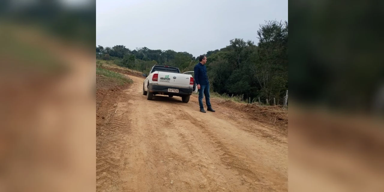 COM ASSESSORIAS - A Secretaria de Agricultura fez a recuperação e alargamento de estrada em pequena propriedade rural no bairro Olaria.