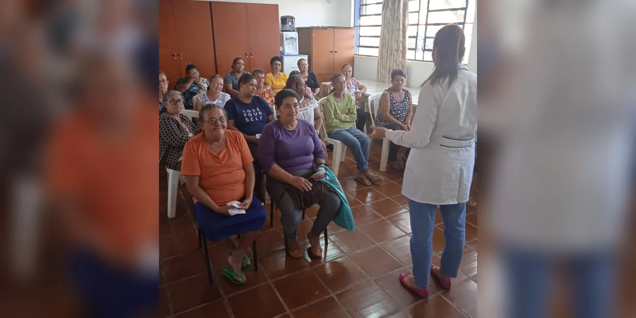 A nutricionista Verônica falou sobre alimentação saudável, leitura de rótulo, e alimentos restritos para hipertensos e diabéticos de forma dinâmica e com grande participação dos pacientes.