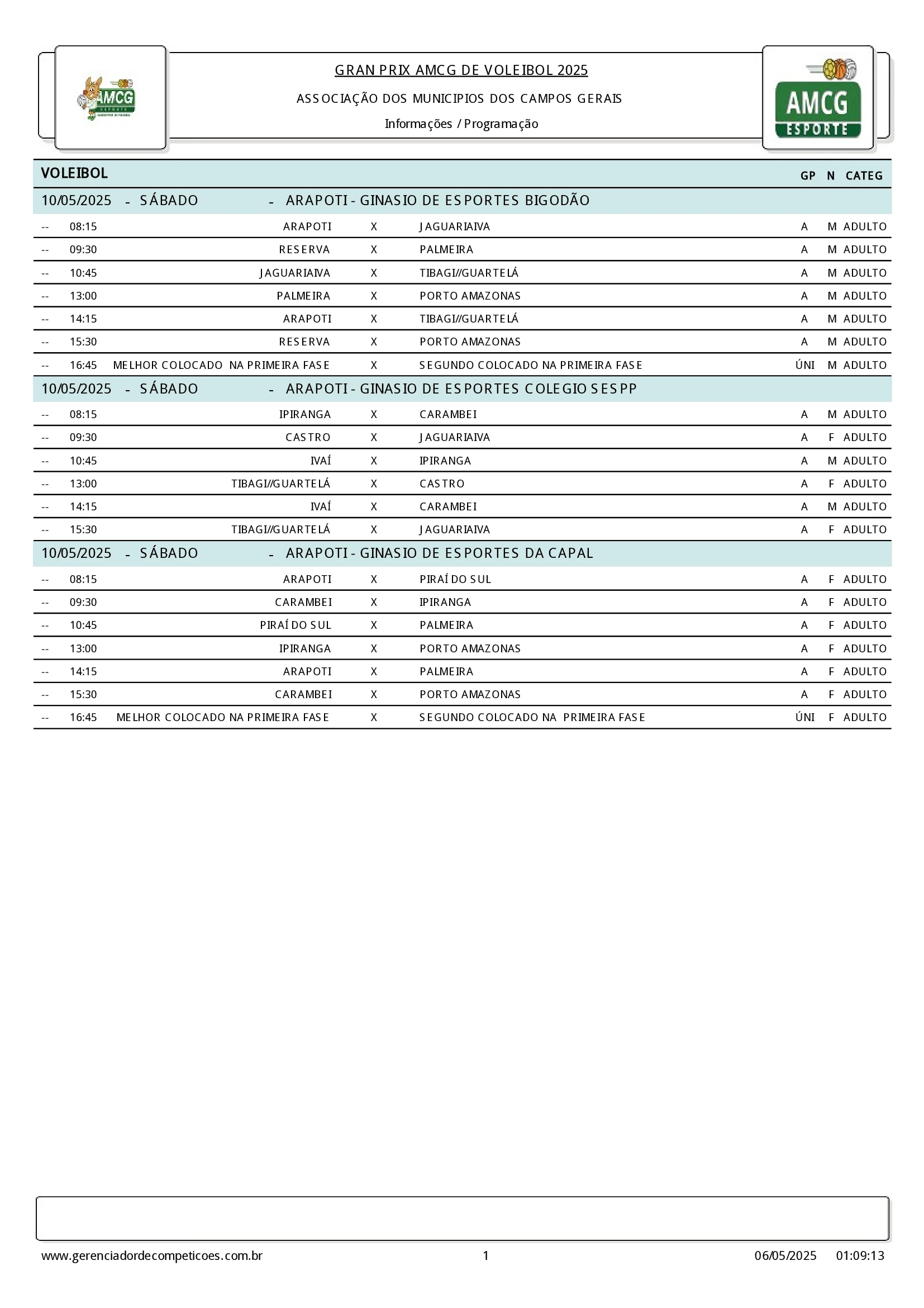COM ASSESSORIAS - A cidade de Arapoti sedia neste sábado (10) a abertura da temporada 2025 do Grand Prix AMCG de Voleibol, competição organizada pela AMCG Esportes que reúne equipes adultas masculinas e femininas dos municípios associados à entidade.