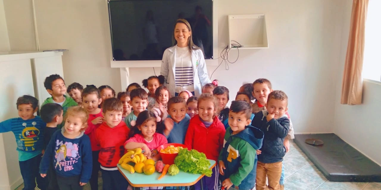 COM ASSESSORIAS - A nutricionista Verônica Thomé, da Secretaria de Saúde, realizou atividades com o tema “De onde vêm os alimentos” com as crianças do CEI Nosso Cantinho, incluindo degustação de frutas.