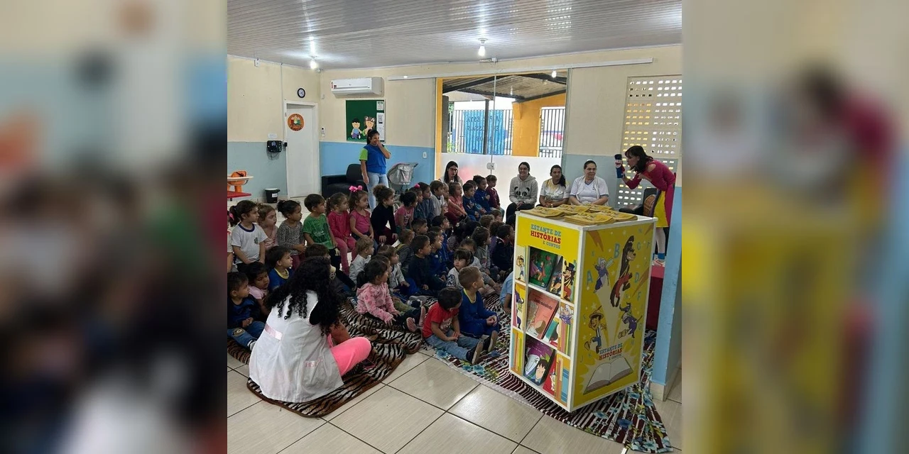 COM ASSESSORIAS - Nesta terça-feira (18), em comemoração ao Dia Nacional do Livro Infantil - data que também celebra o nascimento do escritor Monteiro Lobato, o projeto Estante de Histórias realizou atividade de contação de histórias para os alunos do Centro Municipal de Educação Infantil (CMEI) Helena P. Barchechen.