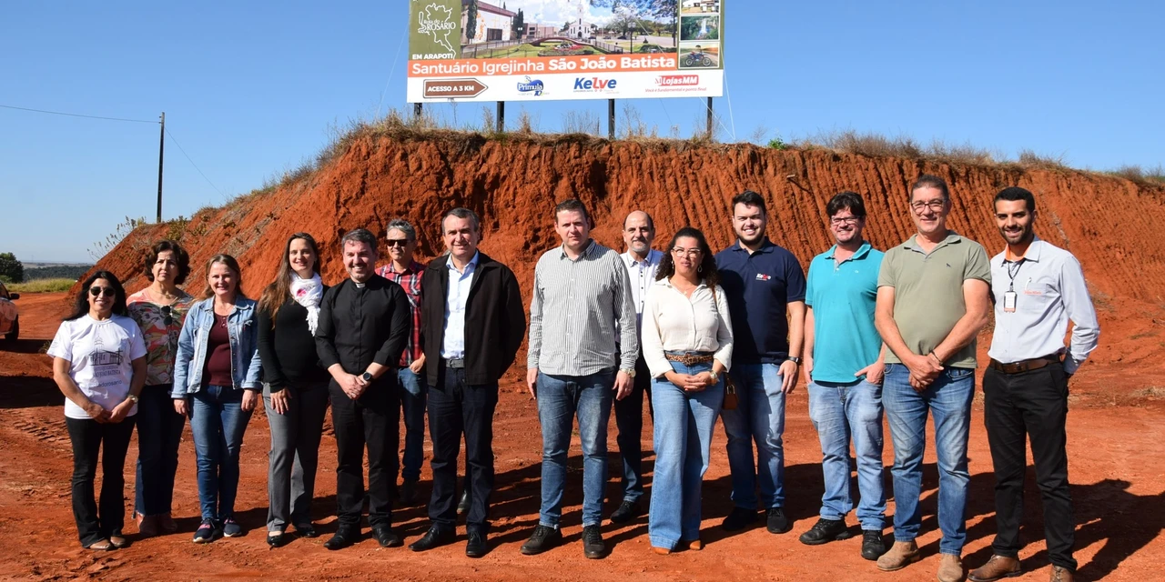COM ASSESSORIAS - O Santuário Igrejinha São João Batista inaugurou hoje o primeiro dos quatro outdoors de promoção do turismo religioso de Arapoti, integrando a Rota do Rosário, que fica à beira da PR-092, entre Wenceslau Braz e Arapoti (próximo ao posto da polícia rodoviária). Participaram do evento o Pároco Anderson Marchiori, o Prefeito Municipal, Irani Barros (PSDB), o Vice-Prefeito Potinho (MDB), o Presidente da Câmara, Edilson Corsini (UNIÃO), e a Secretária do Turismo, Luana Goularte. Também estiveram presentes representantes dos patrocinadores do outdoor, Kelve Supermercados, Prímula e Lojas MM.