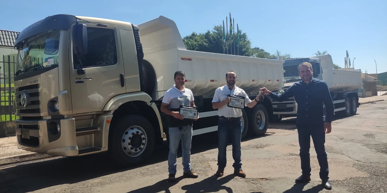 COM ASSESSORIAS - O prefeito Irani Barros na última sexta-feira, recebeu as chaves de dois caminhões basculantes, que irão reforçar a frota da Secretaria de Agricultura, responsável hoje, pela manutenção das estradas rurais.