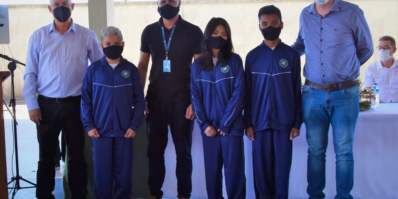 COM ASSESSORIAS - O vice-prefeito Potinho participou da solenidade de entrega dos uniformes aos alunos do Colégio Cívico Militar João Paulo II realizada na manhã dessa quarta (17). Também estiveram presentes o Secretário de Educação, José Carlos de Carvalho, os vereadores Edilson Corsini, Buika, Dikinho, Lelo Ulrich, Luciano Vavá e Maicon Pot, o Chefe do Núcleo de Wenceslau Braz, Joaquim Gabriel Faustinoni, o representante da Casa Civil Juarez Leal, a diretora do Colégio, Karina Lobo, policiais militares, entre outros representantes, professores e alunos.