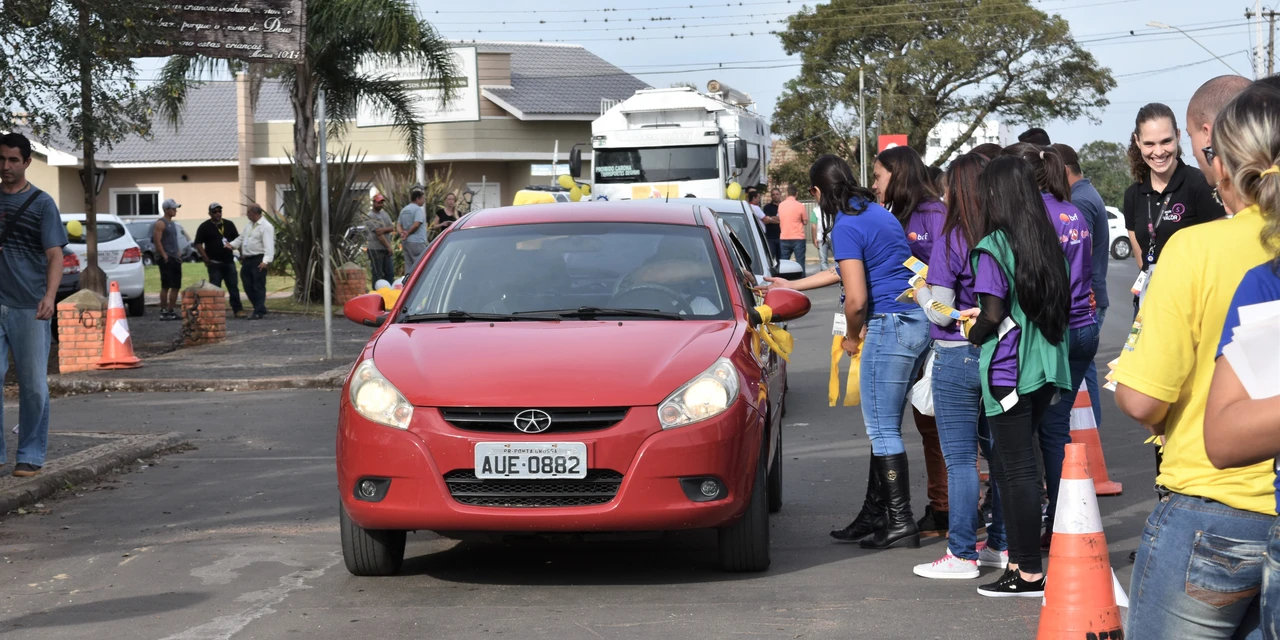 Durante a tarde as equipes formadas pelas empresas participantes e com apoio de viaturas do Detransede e Polícia Militar realizaram uma blitz educativa com panfletagem, entrega de bexigas e fitas amarelas para os motoristas e pedestres. A ação foi encerrada com uma carreata que partiu da frente da Igreja Evangélica, seguindo pela Rua das Campinas e Avenida das Flores, até retornar pela Avenida dos Pioneiros e encerrando em frente a BRF.