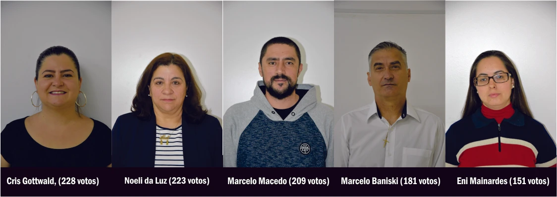 IMPRENSA/Carambeí - Crisleine do Rocio Gottwald, (228 votos), Maria Noeli Pedroso da Luz (223 votos), Marcelo Macedo (209 votos), Marcelo Baniski (181 votos) e Eni Mainardes (151 votos) vão compor o Conselho Tutelar de Carambeí a partir de janeiro de 2020. Juntos, conquistaram 992 votos dos 1843 votos válidos.