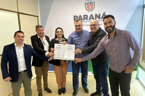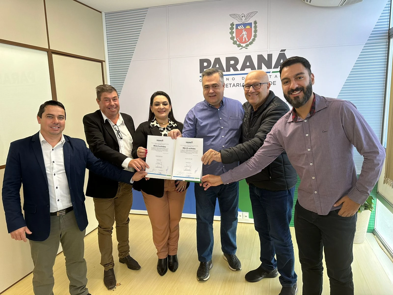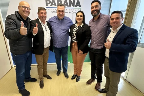 DA REDAÇÃO - A prefeita de Carambeí, Elisângela Pedroso, acompanhada dos vereadores Deleon Betim, Ilson Caninana e Eclaiton Bueno, assinou na manhã de hoje (5), em Curitiba, a ordem de liberação de recursos estaduais que foram recebidos a fundo perdido e que serão aplicados nas obras do novo Complexo de Saúde do município.