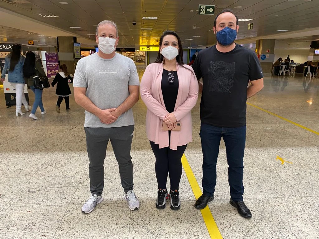 Moacyr Fadel, prefeito de Castro, e Elisângela Pedroso, prefeita de Carambeí, embarcaram junto com Henrique Carneiro na tarde de ontem no aeroporto Afonso Pena. (Foto: Divulgação/PMC)