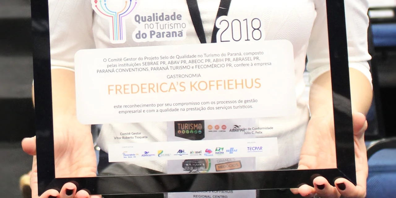 COM ASSESSORIAS - Atingir os requisitos mínimos na avaliação do Modelo de Excelência em Gestão (MEG) e da Fundação Nacional de Qualidade (FNQ) são as principais obrigações para um empresa conquistar um Selo de Qualidade no Turismo no Paraná e, mais uma vez, pelo terceiro ano consecutivo, o Frederica’s Koffiehuis recebe o título na sexta-feira (15) que atesta a qualidade em gestão, processos e serviços, aumenta a credibilidade e garante um diferencial competitivo no mercado à empresa.