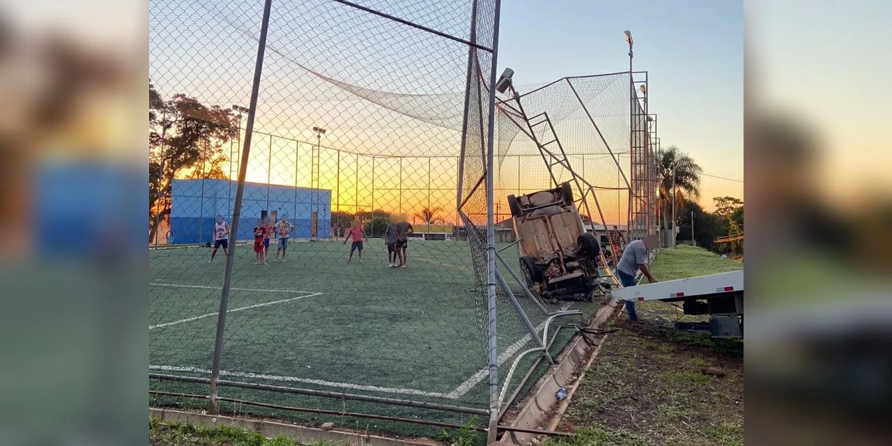 Um homem de 31 anos foi preso depois de bater o carro contra a grande de um campo de futebol society em Carambeí, nos Campos Gerais do Paraná, de acordo com a Polícia Militar (PM).