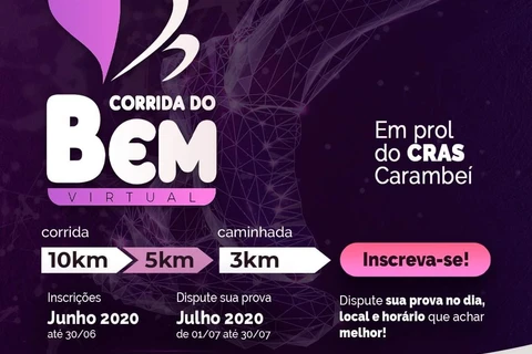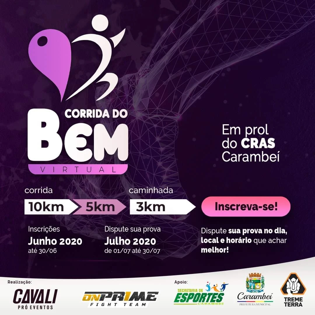 IMPRENSA/Carambeí - A Corrida do Bem Virtual é um evento organizado pela Academia On Prime, em parceria com a Cavali Pró Eventos, com apoio da Secretaria Municipal de Esportes de Carambeí. O evento tem por objetivo estimular a prática do esporte durante o período de isolamento social, sem promover a aglomeração de pessoas.