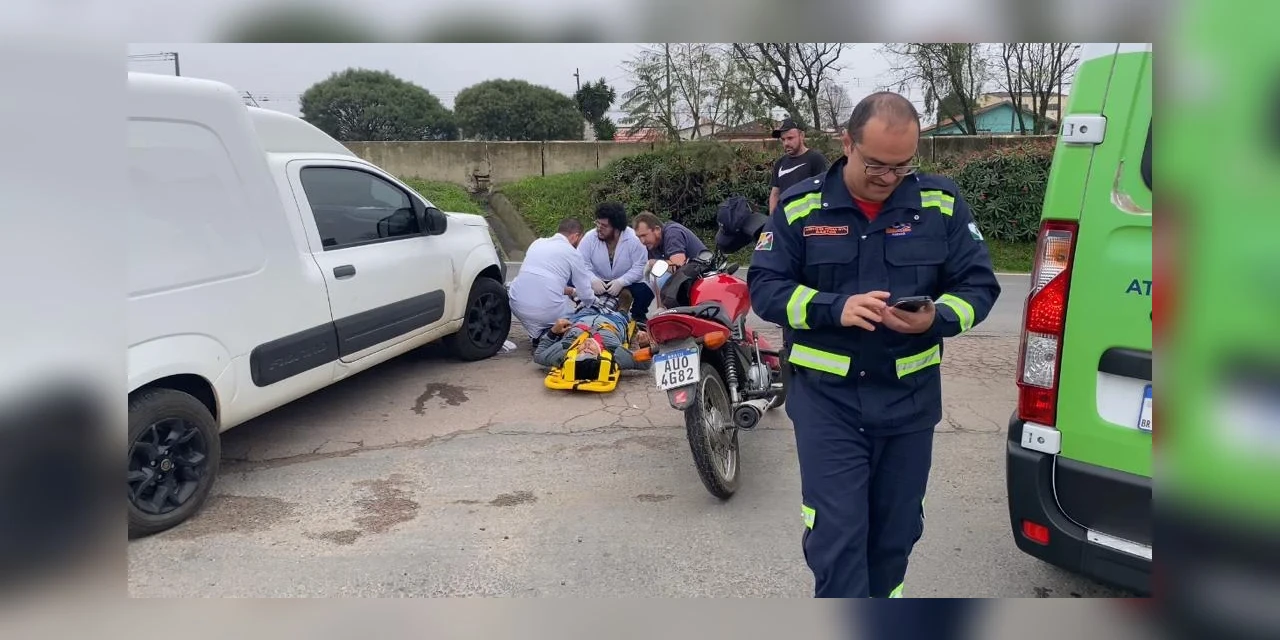 Na manhã desta sexta-feira (25), por volta das 9h30, um motociclista ficou ferido em um acidente com um veículo na entrada de um posto de combustíveis em Carambeí.