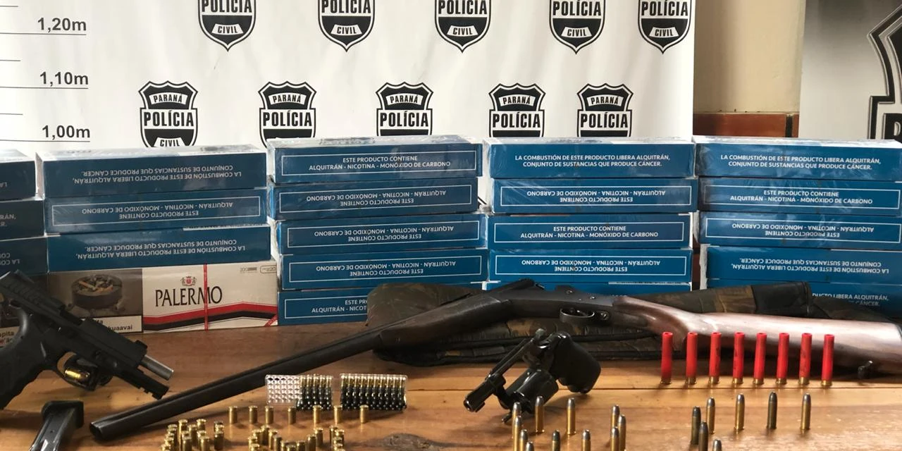 Durante a operação foram apreendidos um revólver calibre 38; uma espingarda calibre 22 e uma pistola 380; 153 munições dos calibres 22, 38, 36 e 380, além de pacotes de cigarros contrabandeados.