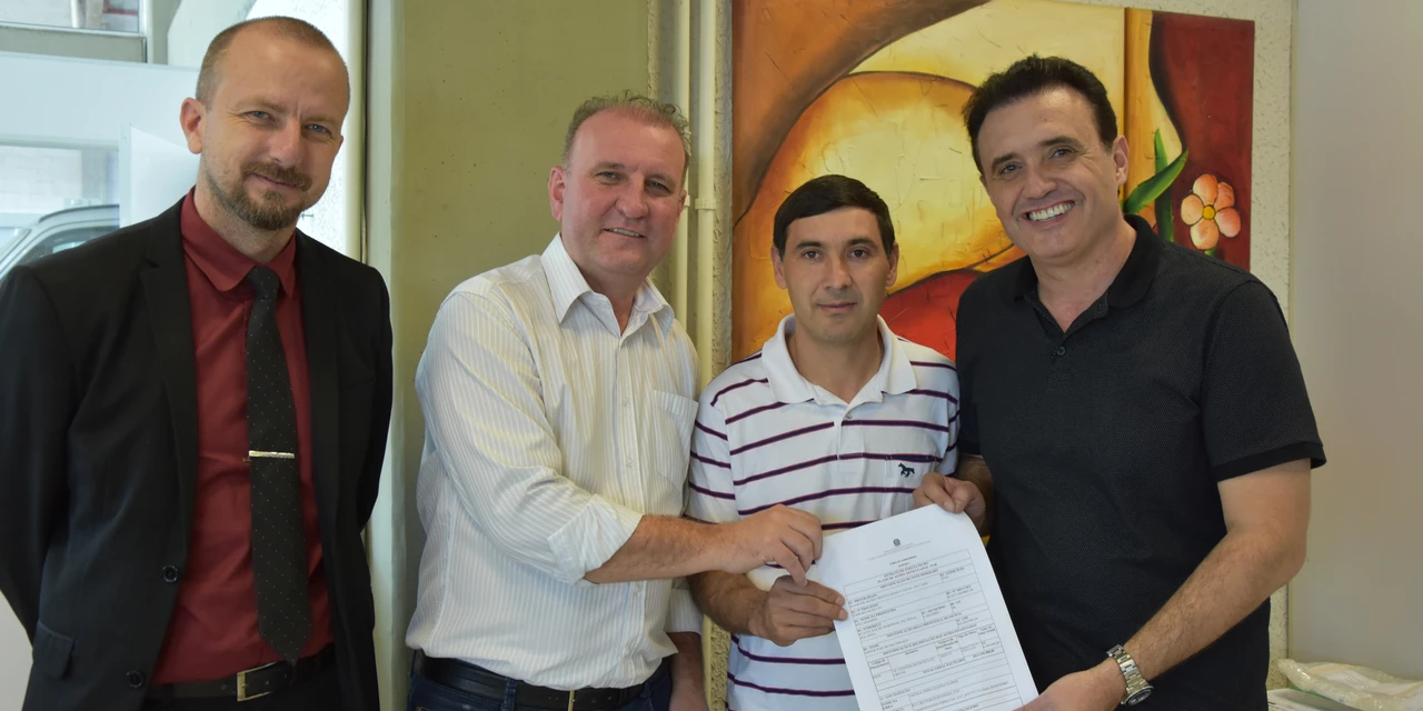 Secretário Municipal de Finanças, Marcelo Greskiv, Prefeito Osmar Blum, vereador Joel Costa e deputado federal Osmar Bertoldi.
