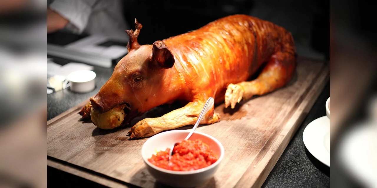 Cardápio - O ‘Porco no Rolete’ terá como acompanhamentos: arroz, farofa e saladas.