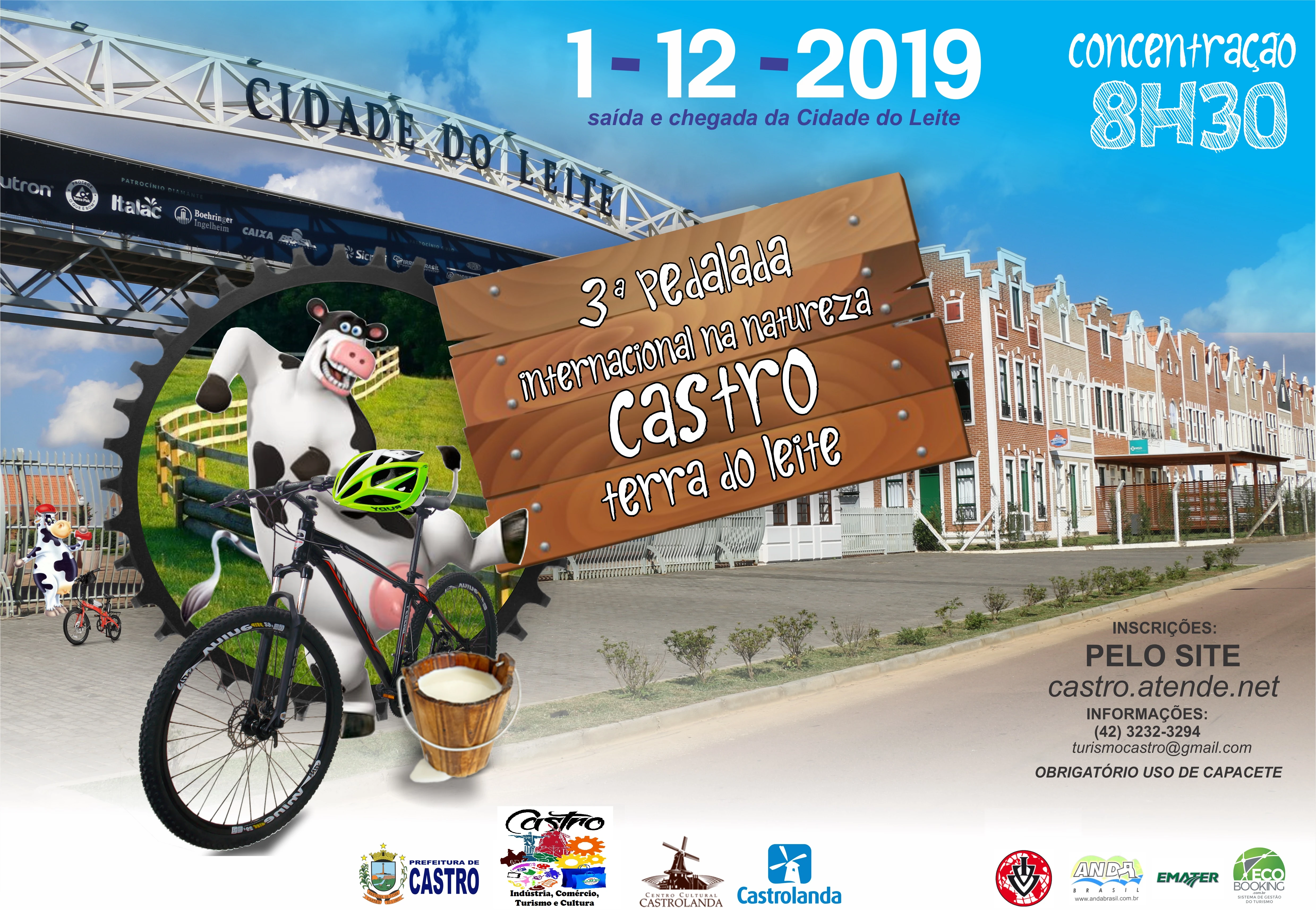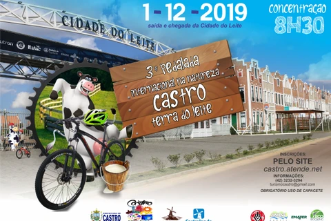 IMPRENSA/Castro - A 3ª Pedalada Internacional - Castro Terra do Leite, acontece neste domingo 1º, com trajeto de 30 a 45 quilômetros entre estradas e trilhas, com saída e chegada na Cidade do Leite, na Colônia Castrolanda.