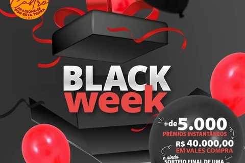 Os consumidores que comprarem nas empresas que participam da Black Week concorrem a 10 prêmios de R$ 500 que serão sorteados no fim do mês e ainda podem ganhar prêmios instantâneos na raspinha virtual, que são os produtos da grife ‘Castro, Apaixone-se por esta Terra’, como canecas, camisetas, almofada, jogo de tabuleiro, garrafinhas térmicas e chaveiros, entre outros, todos com a identidade visual da marca.
