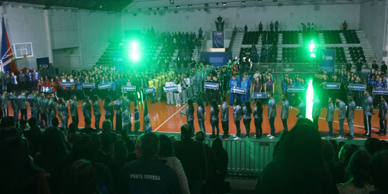 IMPRENSA/Castro - A abertura da fase regional dos 32º Jogos da Juventude do Paraná (JOJUPS), realizada na noite de segunda-feira (22) no Ginásio de Esportes Douglas Pereira, contou com mais de duas mil pessoas. Além das delegações que participam da competição que se estende até o próximo sábado, o evento contou com a presença de autoridades e a comunidade.