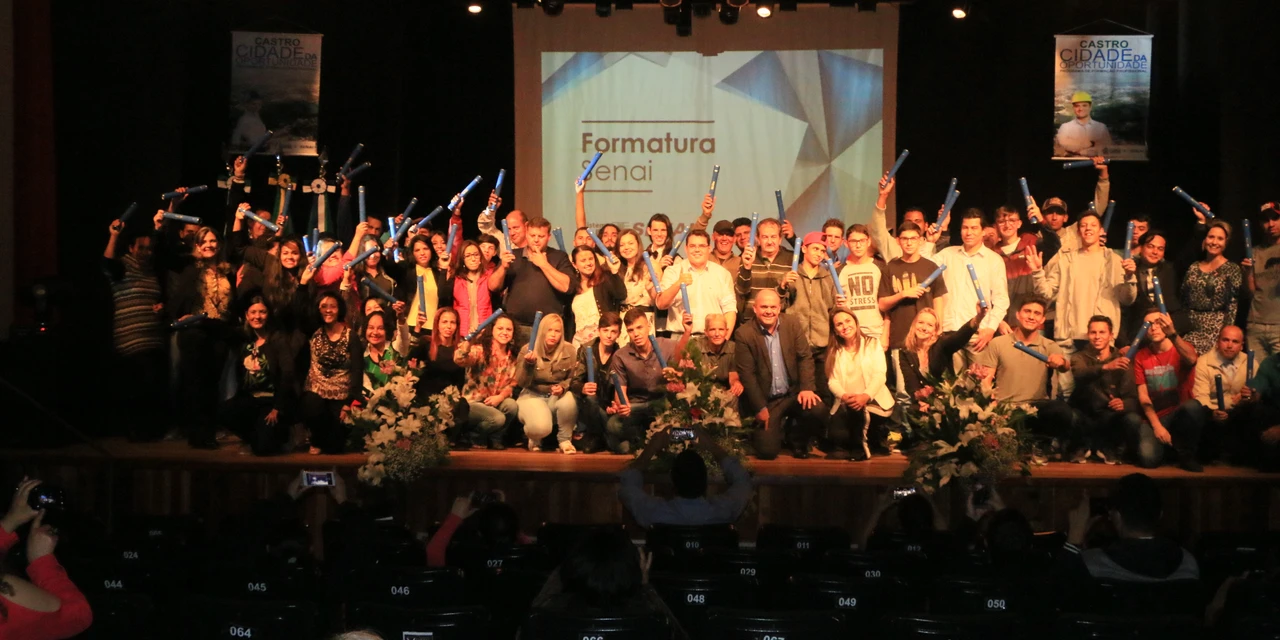 IMPRENSA/Castro - A Prefeitura Municipal de Castro, por meio da Diretoria de Indústria, Comércio, Turismo e Cultura, realizou na segunda-feira (29) à noite, no Teatro Bento Mossurunga, a entrega de certificado de conclusão para 160 alunos dos cursos profissionalizantes promovidos em parceria com o Senai.