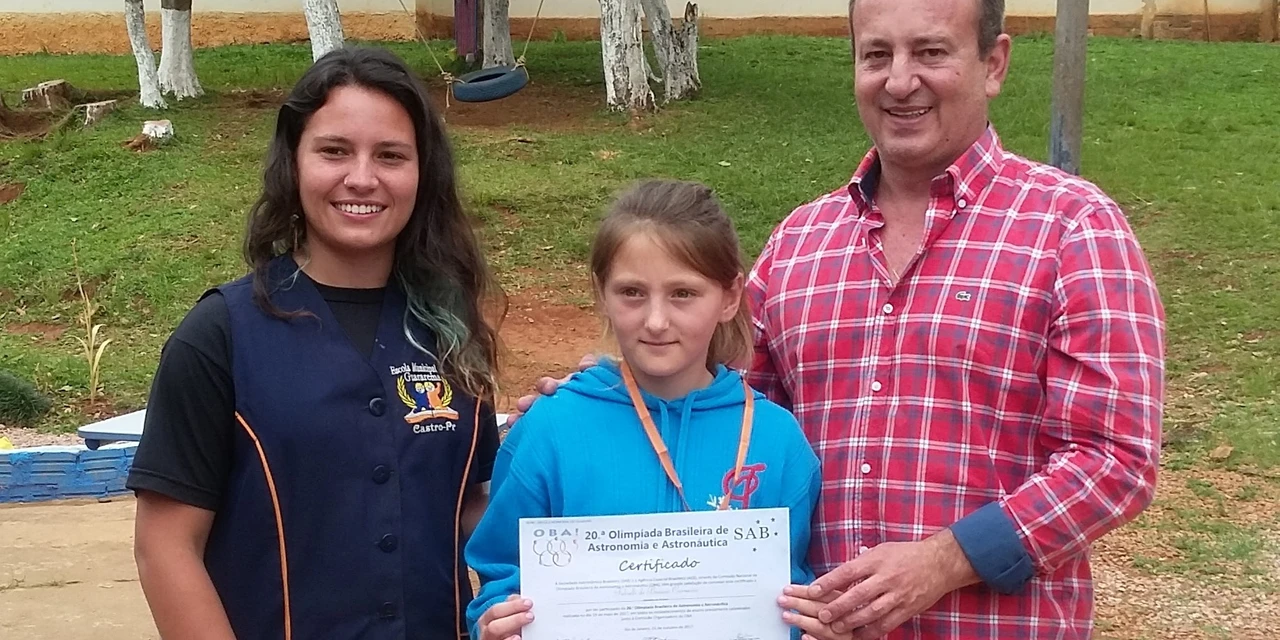 IMPRENSA/Castro - Alunos das escolas municipais de Guararema e Vicente Machado receberam medalhas pela participação na Olimpíada Brasileira de Astronomia e Astronáutica (OBA). Na Escola do Guararema foram duas medalhas de bronze para alunos do quarto ano, e na Escola Municipal Vicente Machado foram contemplados 20 alunos com quatro medalhas de ouro e quatro de bronze para alunos do quarto ano, e outras quatro de ouro, duas de prata e seis de bronze para alunos do quinto ano.