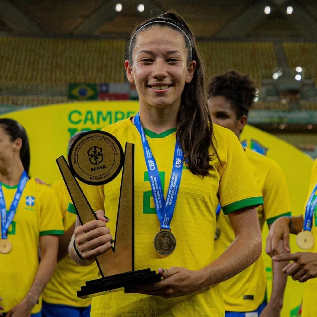 COM ASSESSORIAS - A atleta castrense Bruna Santos Nhaia, foi eleita "Atleta Revelação" do Campeonato Brasileiro 2021 de Futebol Feminino em concurso realizado pelo canal de esportes ESPN que premia os melhores do ano no futebol brasileiro masculino e feminino. Bruna recebeu a Bola de Prata.