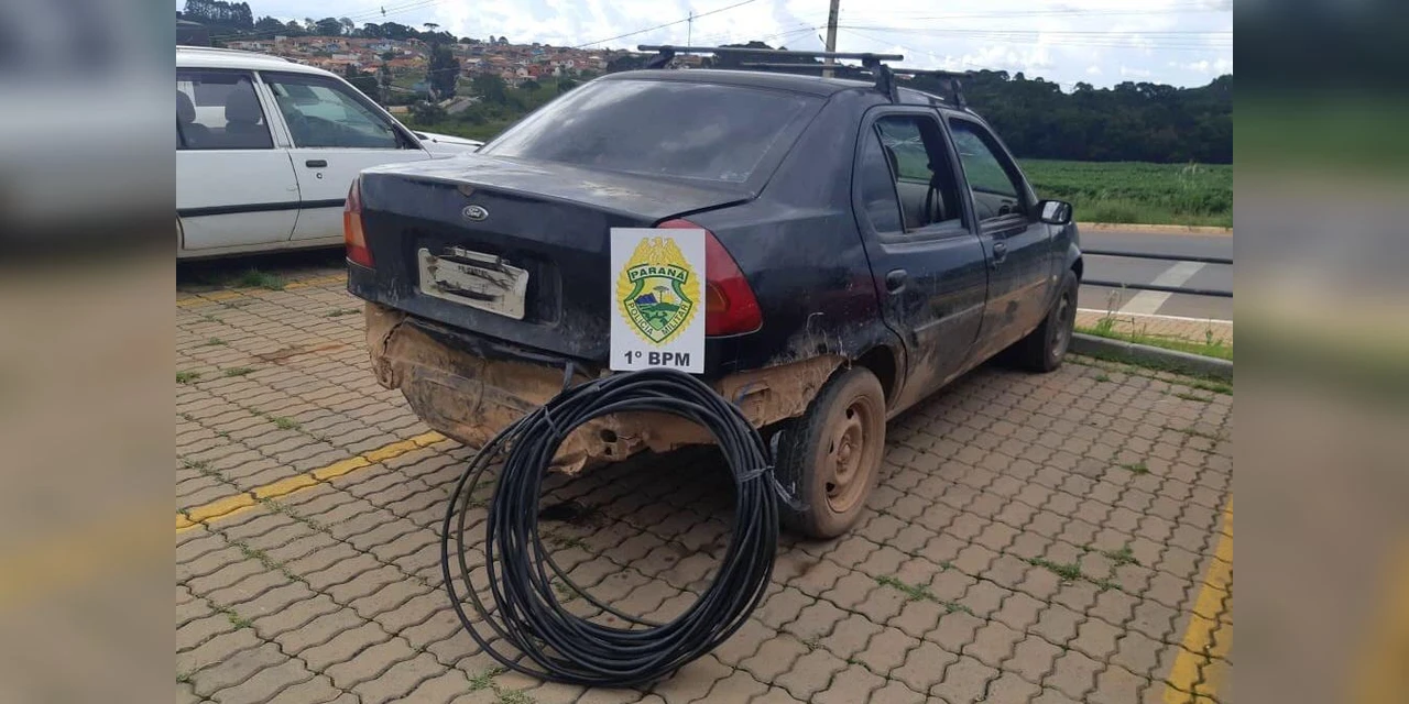 No local a PM encontrou cerca de 40 metros de fios, além de uma serra utilizada no corte e o veículo que seria utilizado para transportar o material.
