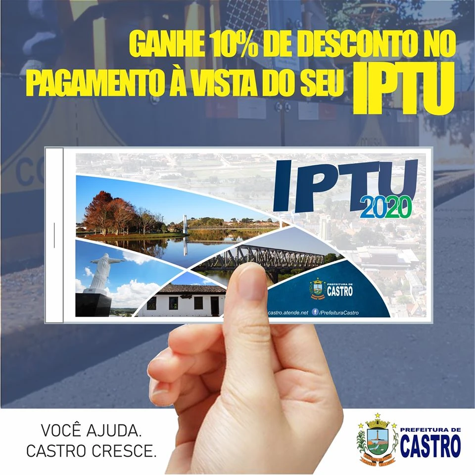 IMPRENSA/Castro - O carnê do Imposto Predial, Territorial, Urbano (ITPU) 2020 já está disponível na plataforma online da Prefeitura de Castro no endereço www. castro.atende.net. O passo a passo para a emissão está descrito no link: