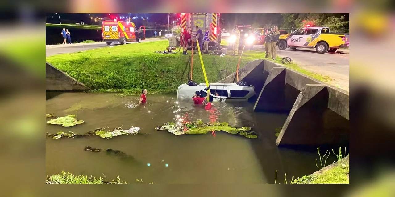 Dois homens morreram após o carro em que elas estavam cair de uma ponte no lago do Parque Lacustre, em Castro, nos Campos Gerais do Paraná, segundo o Corpo de Bombeiros.
