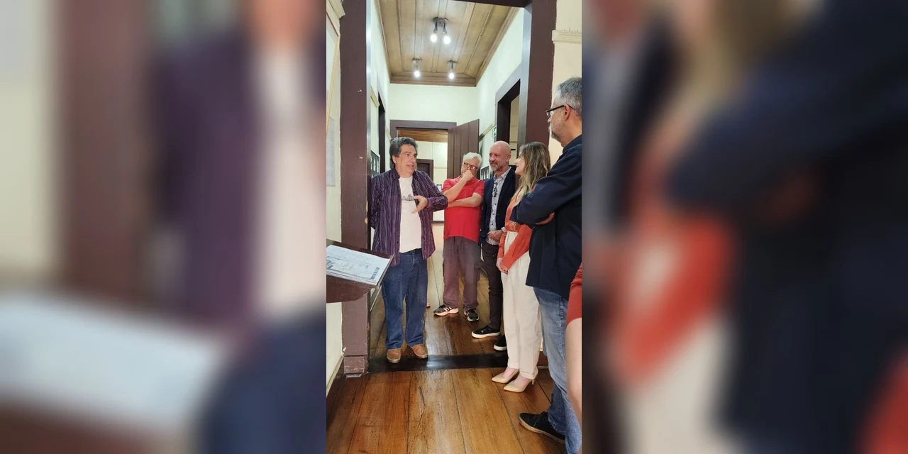 A comitiva também visitou os espaços culturais Casa Mariinha, Casa da Cultura Emília Erichsen e a Casa Marianna, onde pode conhecer de perto os acervos físicos e compreender a importância histórica dos documentos preservados no município.
