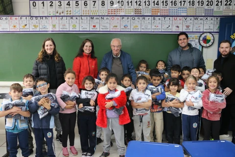 O prefeito de Castro, Reinaldo Cardoso, realizou uma entrega simbólica dos kits para uma turma da Escola Municipal Professora Dalila Ayres. “Uma roupa dessas mais quentinha no inverno é fundamental, além disso a escola fica mais bonita com todas as crianças uniformizadas e os pais também ficam felizes de saber que elas estão recebendo os uniformes”, disse. Doutor Reinaldo frisou ainda que todos os alunos e escolas serão contemplados com os novos uniformes.