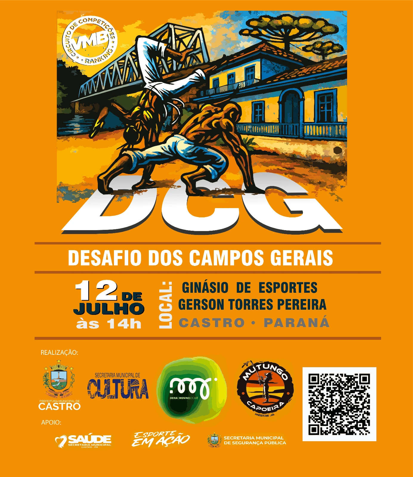 Promovido pela Prefeitura Municipal de Castro, por meio da Secretaria Municipal de Cultura, em parceria com o grupo Mutungo Capoeira e o Instituto Dreka – Movimento Coral, o evento faz parte do Circuito de Competições VMB – Ranking e visa celebrar a resistência, a tradição e a força da capoeira como expressão cultural e social.