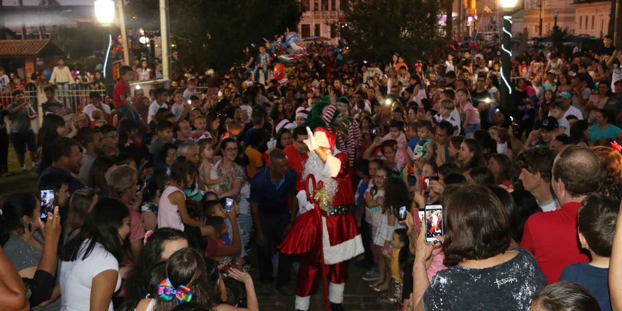 IMPRENSA/Castro - A abertura oficial do Natal de Castro, no sábado (1º) reuniu milhares de pessoas na Praça Manoel Ribas para ver a chegada do Papai Noel que fez a alegria da criançada. Também foi aberta a Casa do Papai Noel, instalada no antigo Vicente Machado.