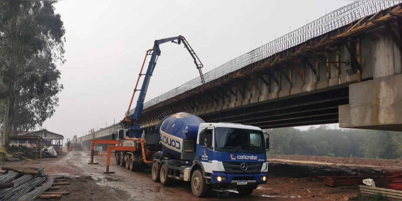 COM ASSESSORIAS - O DER/PR está executando a superestrutura (laje superior) da ponte sobre o Rio Iapó. A obra faz parte do novo Contorno Norte de Castro, nos Campos Gerais, que está em andamento para fazer a ligação entre a PR-090 com a PR-151.