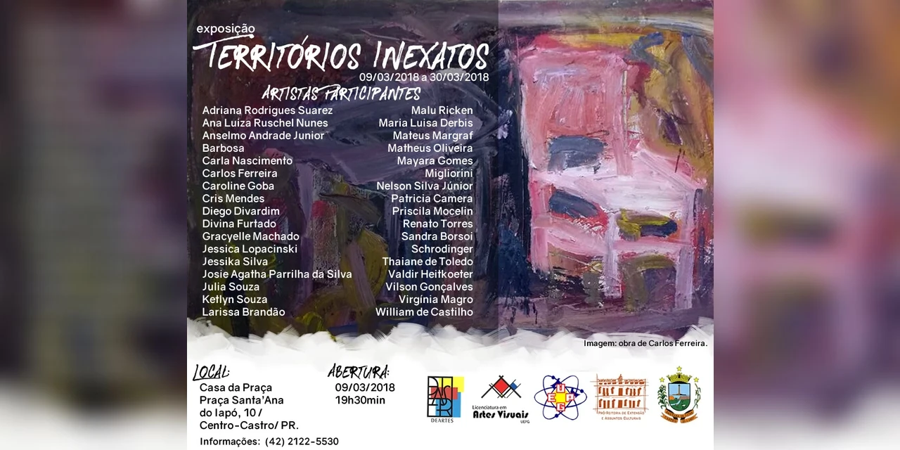 IMPRENSA/Castro - A Casa da Praça abre nesta sexta-feira (9), a exposição "Territórios Inexatos" composta por trabalhos de 34 artistas pertencentes ao curso de Licenciatura em Artes Visuais da Universidade Estadual de Ponta Grossa (UEPG). Doze desses artistas são professores e 22 integram o Grupo Grimpa formado por ex-alunos, alunos e alguns professores do curso.