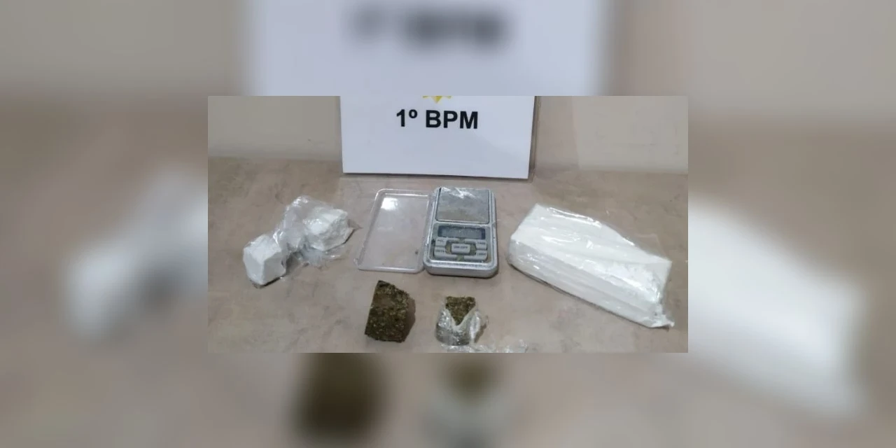 No interior do carro, que realmente tinha dois ocupantes, foi encontrado um tablete pesando 300 gramas de cocaína, 18 gramas de maconha e ainda uma balança de precisão.