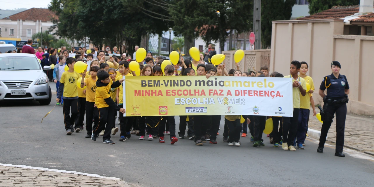 Uma passeata pela Rua Dr. Jorge Xavier da Silva encerrou as atividades do Maio Amarelo, promovido pela Prefeitura de Castro, através da Secretaria Municipal de Segurança Pública em parceria com o Detran.