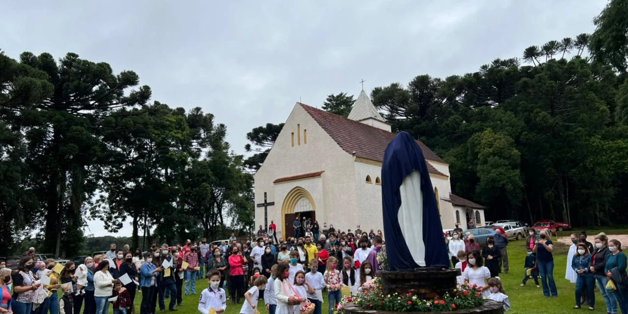 COM ASSESSORIAS - O maior presente de aniversário da Capela Santa Terezinha, na colônia alemã Terra Nova, em Castro, foi entregue neste domingo (13). O memorial à padroeira da comunidade, sonhado em 2020 e tão aguardado, pode ser conhecido pelos moradores no final da manhã, depois da missa festiva e da bênção do padre Cristiano Marcos Rodrigues, pároco da Paróquia Nossa Senhora do Perpétuo Socorro, a quem a capela pertence. Como que em sinal de graça, a chuva deu uma trégua e a solenidade acabou realizada com toda a pompa e emoção, para alegria dos devotos.