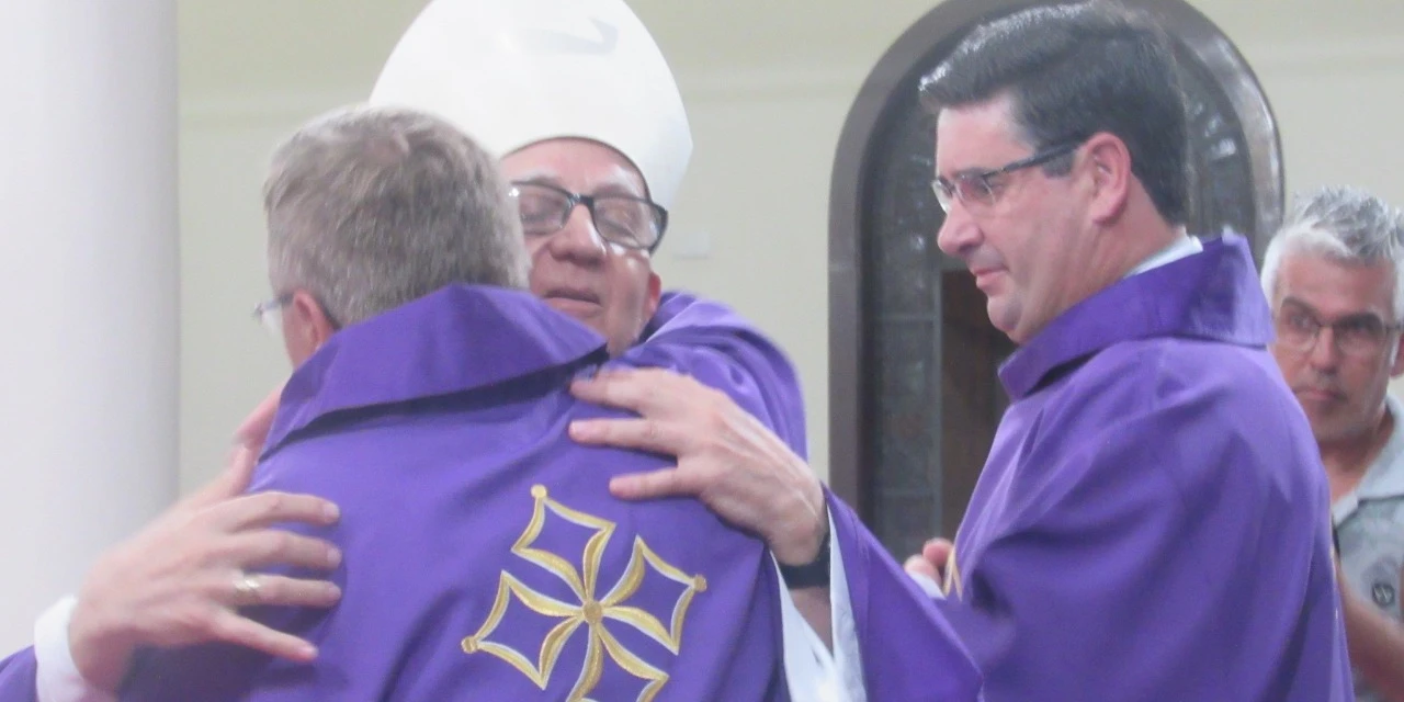 COM ASSESSORIAS - "A esperança não decepciona". Citando este trecho da Carta de São Paulo aos Romanos, o bispo dom Sergio Arthur Braschi iniciou sua homilia no sábado (14), na celebração que ordenou dois novos diáconos permanentes na matriz Sant'Ana, de Castro. Antônio Geraldo Kluczkowski e Ricardo Aparecido dos Santos, conforme o bispo, representam o renovar da esperança na mais antiga paróquia da diocese, ao atender o chamado a servir como diáconos. "Jesus demonstra as atitudes que vocês terão de ter nessa missão: acolhida, respeito ao jeito do outro, tudo para preparar o coração para o anúncio da Boa Nova", afirmou dom Sergio, lembrando que a Paróquia Sant'Ana em seus 246 anos de história, muito antes de Ponta Grossa, já "pulsava e evangelizava. Deus caminha conosco e não decepciona".