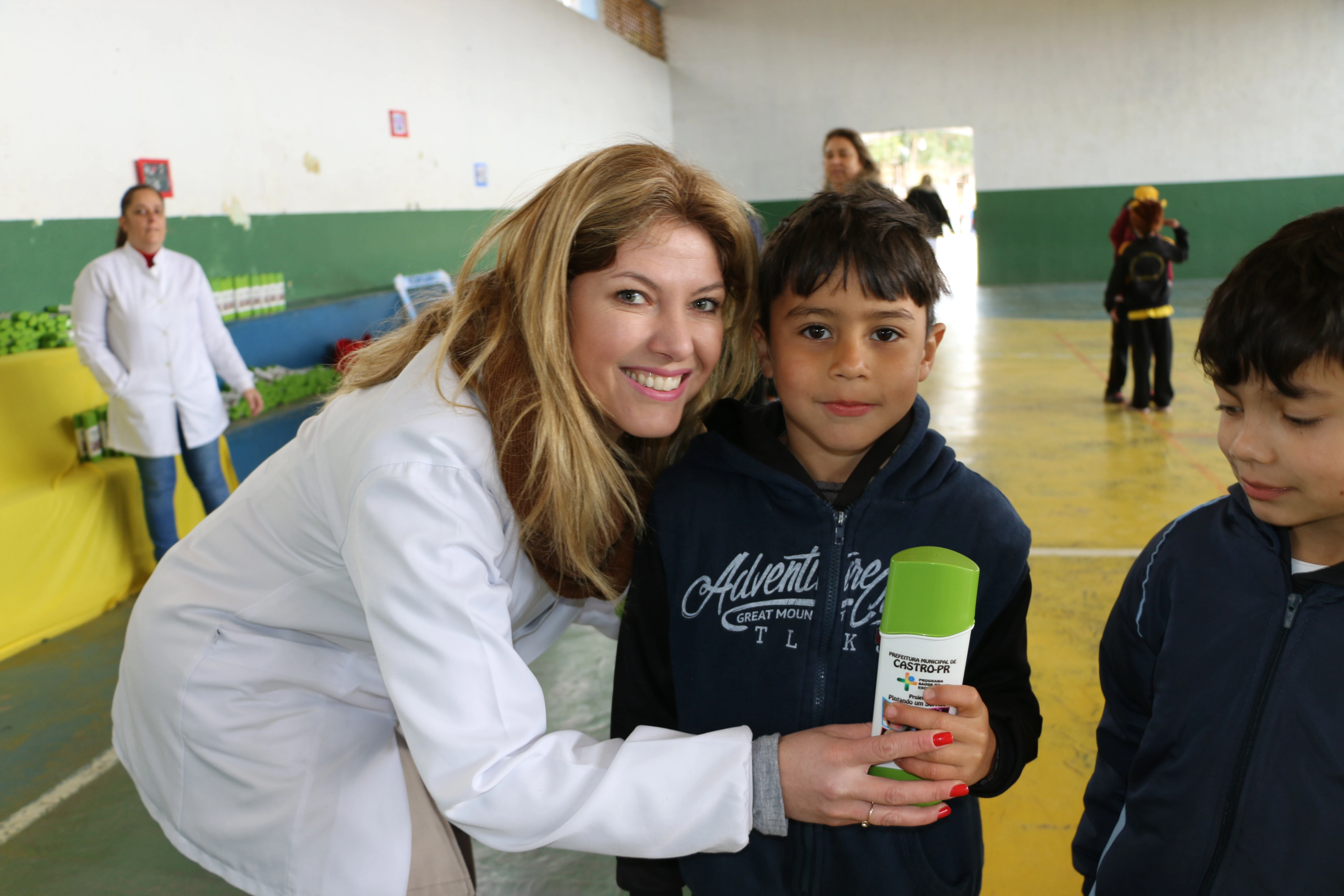 IMPRENSA/Castro - A Secretaria Municipal de Saúde de Castro iniciou na segunda-feira (13) a entrega de kits com estojo, escova, pasta de dente e fio dental para alunos da rede municipal de ensino. Para as crianças a partir de três anos dos Centros Municipais de Educação Infantil (CMEIs) o kit contém escova e livro de orientação para os pais. As escolas receberam flúor para uso semanal em bochechos. A atividade faz parte do projeto “Pintando um Sorriso”, desenvolvido em parceria entre as secretarias de Saúde e Educação.