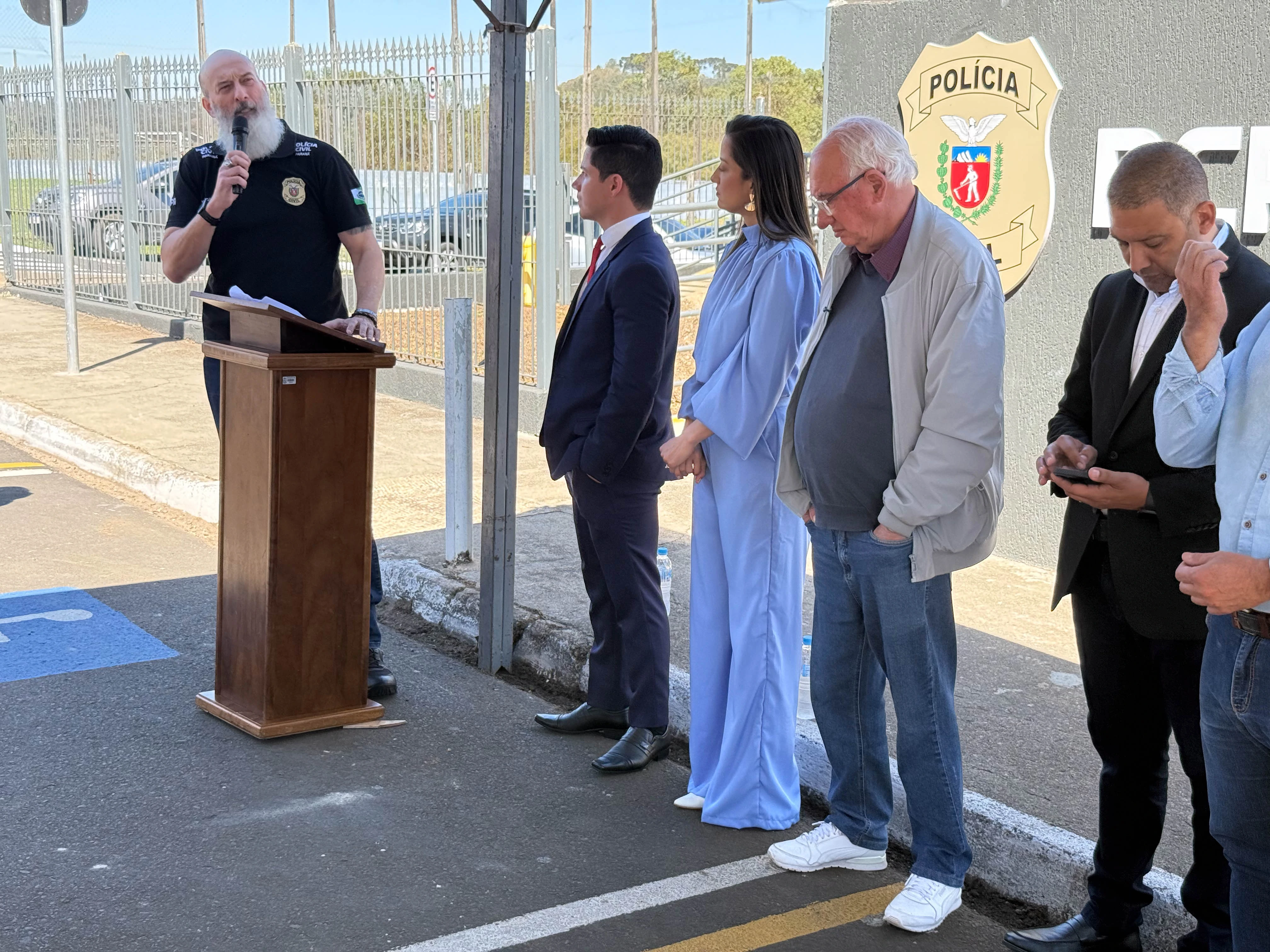Na solenidade de inauguração, com a presença de 15 delegados da região e outras autoridades, o delegado-chefe da Divisão de Polícia do Interior da Polícia Civil, Lanevilton Theodoro Moreira, destacou avanços conquistados pela Secretaria de Estado de Segurança Pública em parceria com o Município. “Hoje é um dia muito especial. Uma das primeiras unidades policiais que visitei foi a antiga Delegacia de Castro que ainda dividia espaço com o Departamento de Polícia Penal. Ali não possuíamos mínimas condições adequadas de trabalho e menos ainda para o atendimento da população, de maneira digna. O evento de hoje representa algo muito importante: a consolidação do entendimento de que questões relacionadas à segurança pública, além de um dever do Estado, é responsabilidade de todos. O prefeito teve uma sensibilidade e um comprometimento muito grande em realizar conosco uma parceria e implementar ações de gestão que permitem hoje essa entrega”, disse.
