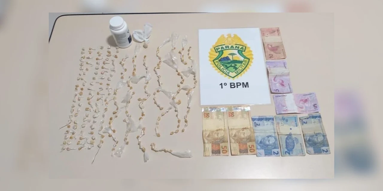 Na residência foram encontradas 258 pedras de “crack”, embaladas e prontas para a comercialização, além de dinheiro em cédulas diversas.