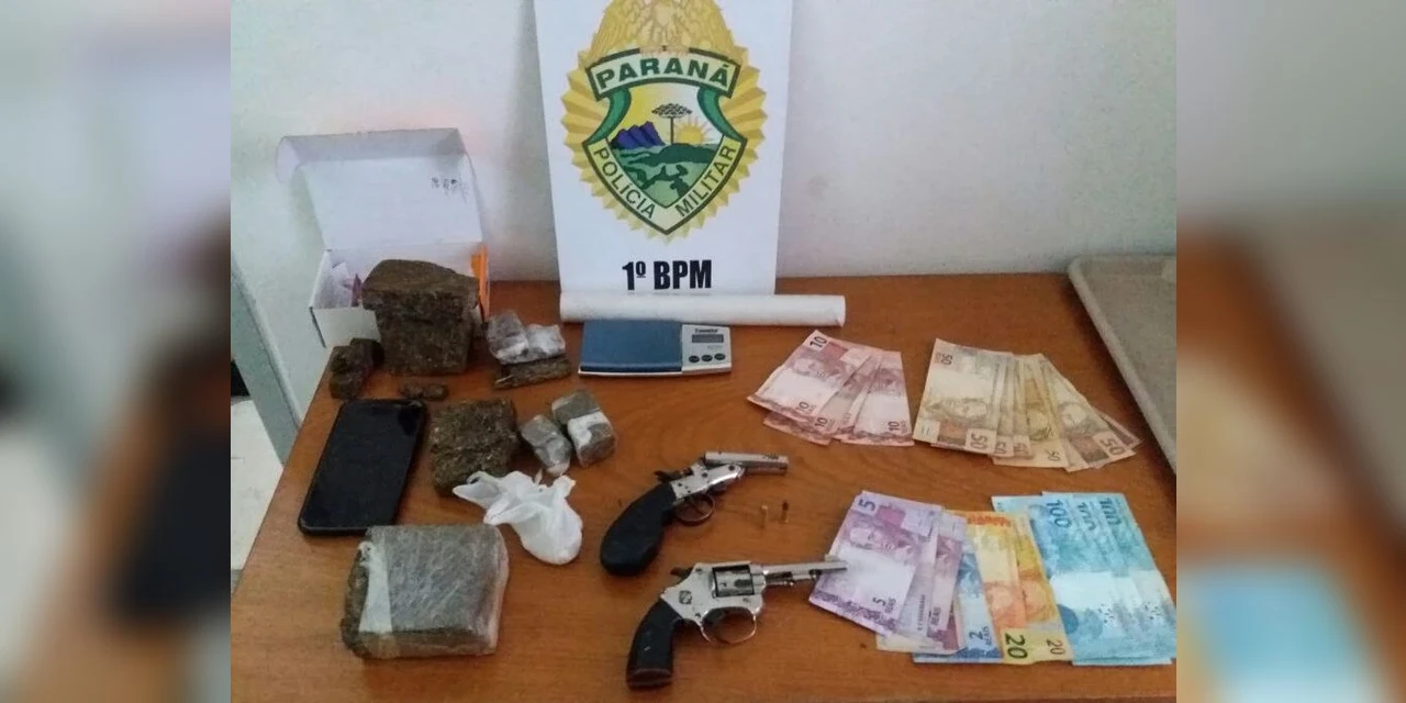 O jovem, de 20 anos, foi localizado pela PM com um revólver calibre 22, uma balança e pouco mais de meio quilo de maconha pronta para comercialização. Ele foi preso e levado à DP de Castro.
