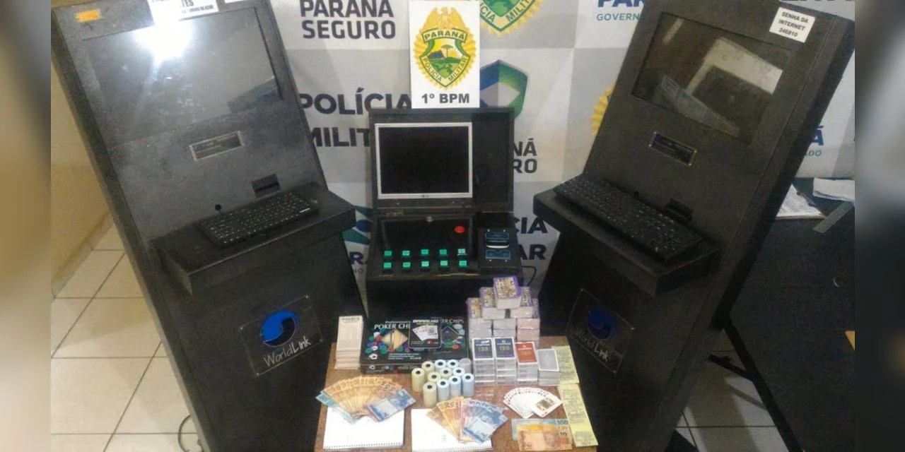 Ao vistoriar o local, os policiais apreenderam máquinas caça-níquel, baralhos novos e em uso, fichas e dinheiro de apostas, além de cartelas de “jogo do bicho” e documentos que indicavam a ocorrência do delito.