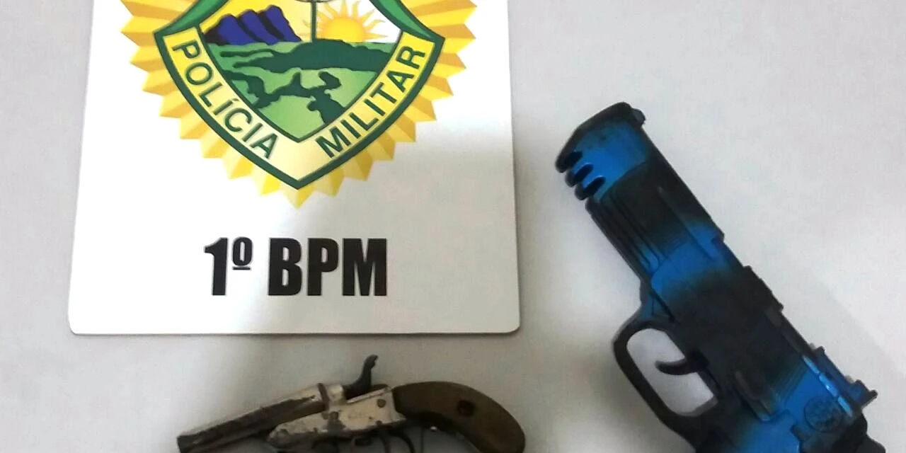 Ao vistoriar o veículo do suspeito, a equipe PM apreendeu um garrucha calibre 22, além de oito munições. Na residência do infrator os policiais apreenderam também um simulacro de arma de fogo, tipo pistola.