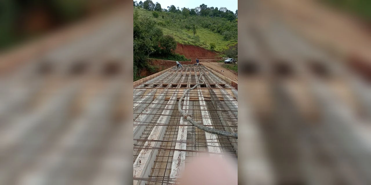 COM ASSESSORIAS - A ponte sobre o Rio Ribeira do Iguape, na região do Abapan, na divisa entre os municípios de Castro e Campo Largo está recebendo concretagem.