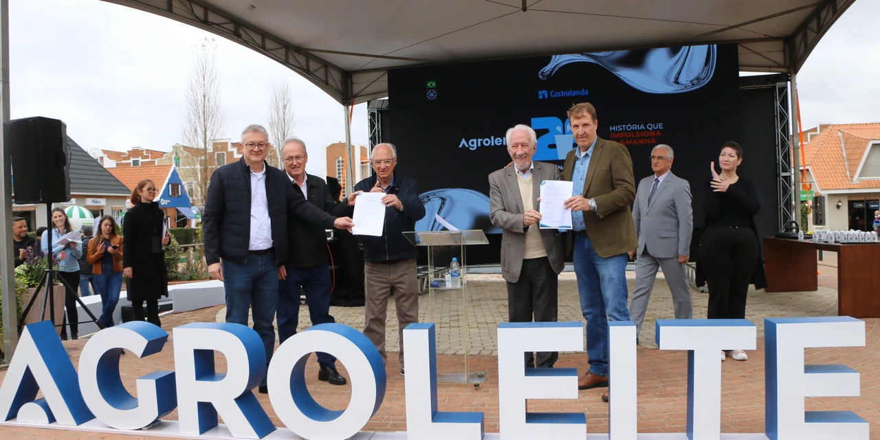 COM ASSESSORIAS - Conquistar a Indicação Geográfica do Leite de Castro é o objetivo da parceria firmada nesta terça-feira (05) entre a Prefeitura, Governo do Estado e Cooperativa Castrolanda. O termo de cooperação e intenções entre as três entidades foi assinado pelo prefeito Reinaldo Cardoso, vice-governador Darci Piana e pelo presidente da Cooperativa, Willem Bouwman, durante a solenidade de abertura do Agroleite, que vai até sexta-feira (08) no Expotrade Castrolanda.