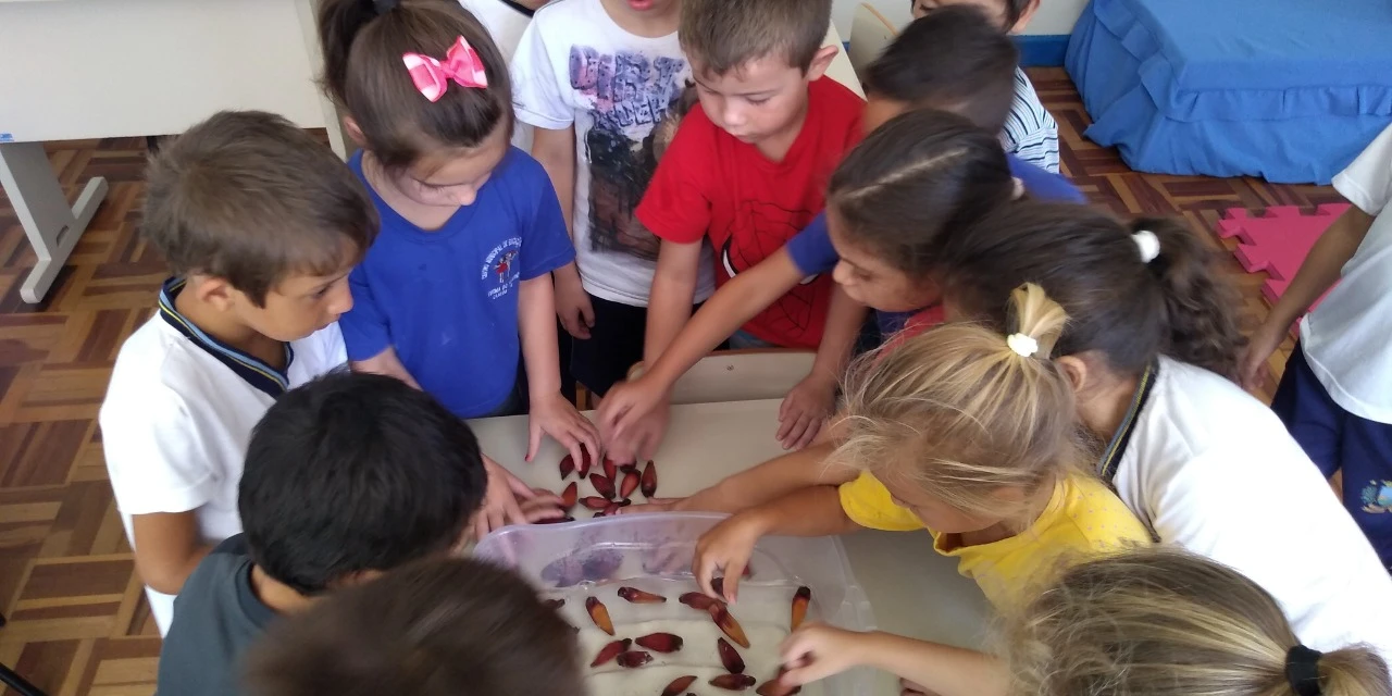 Stella explica que o a ideia do projeto surgiu porque muitas famílias da escola vendem pinhão para ter renda. Ela trabalhou o aspecto da colheita em época certa para preservar a espécie.