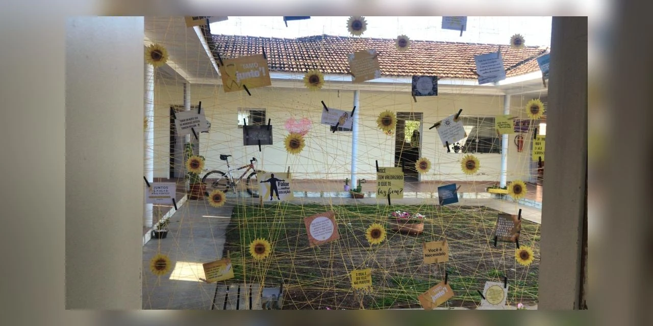 Na recepção do Creas o painel 'Setembro Amarelo: Falar é a melhor solução!' chama a atenção dos usuários e da população para o tema. Os usuários também podem completar a frase 'a vida é...' expostas em outro painel.