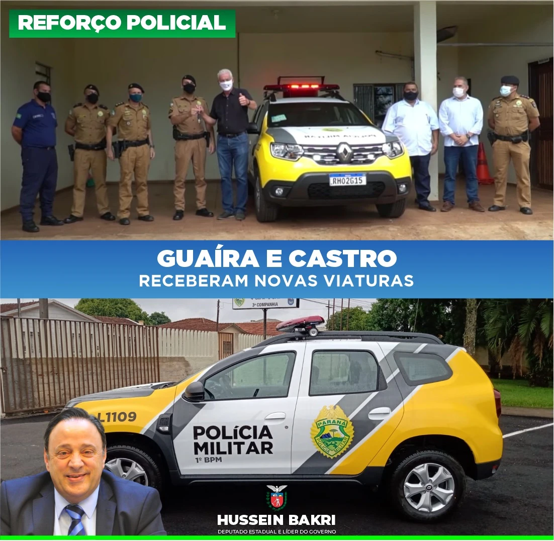 COM ASSESSORIAS - Até o final do mandato, o Governo Ratinho Junior irá renovar 90% da frota da segurança pública. Em paralelo à compra de novos veículos, viaturas também estão sendo locadas de forma a permitir que o Estado economize na manutenção dos automóveis e garanta agilidade em eventuais consertos e substituições de carros, que ficam sob responsabilidade da empresa contratada. Num pedido que fizemos à Polícia Militar, Guaíra e Castro acabam de receber novas viaturas nesse modelo de contratação, que não deixa a população desprotegida em nenhum momento com veículos parados por semanas ou até meses nas oficinas. Uma polícia bem equipada representa mais segurança para os paranaenses e, por isso, o Governo está oferecendo as ferramentas adequadas para esse trabalho ter o máximo de eficácia.